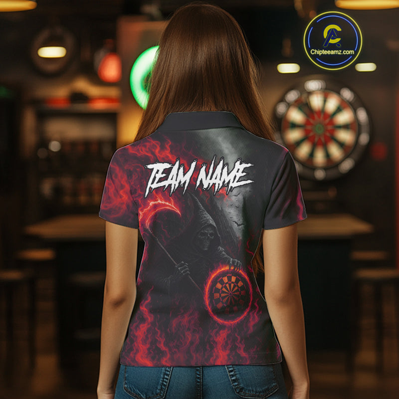 Custom Red Flaming Dartboard Grim Reaper Dart Women Polo Shirt Dart Team Jerseys NYN1640