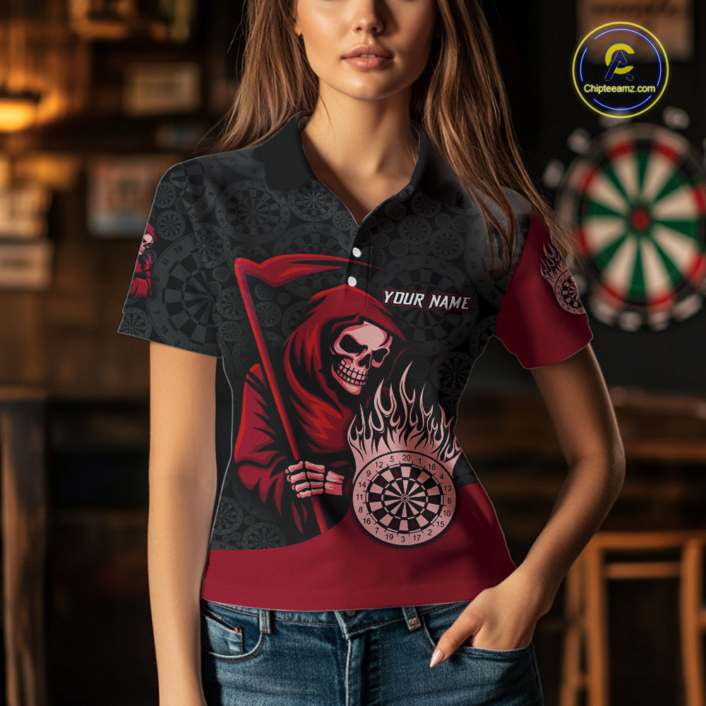 Custom Red Grim Reaper Flame Dartboard Dart Polo Jerseys For Women Dart Shirt Gifts NYN1646