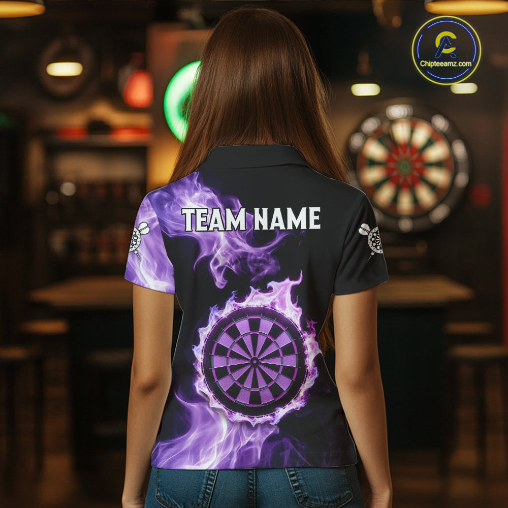 Custom Black And Purple Flames Dartboard Dart Women Polo Jerseys Outfits Dart Team Shirt NYN1661