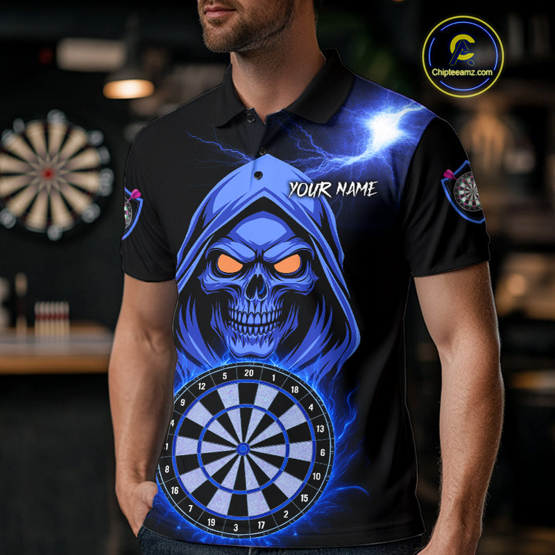Custom Skeleton Blue Flames Dartboard Dart Women Polo Jerseys Outfits Dart Team Shirt NYN1665