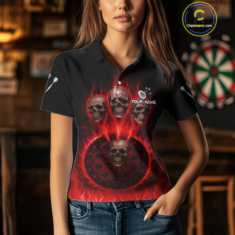 Custom Red Flames Dartboard Horror Multi Skull Dart Women Polo Jerseys Outfits Dart Shirt NYN1679
