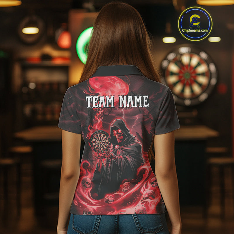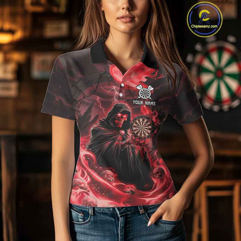 Custom Red Grim Reaper Fire Flames Dart Women Polo Jerseys Outfits Skull Dart Shirt NYN1682