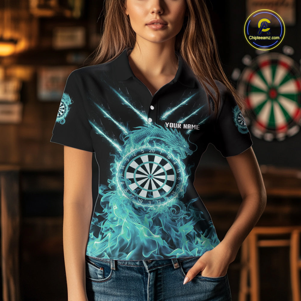 Custom Lightning Dragon Turquoise Flames Dartboard Dart Women Polo Jerseys Dart Team Shirt NYN1705