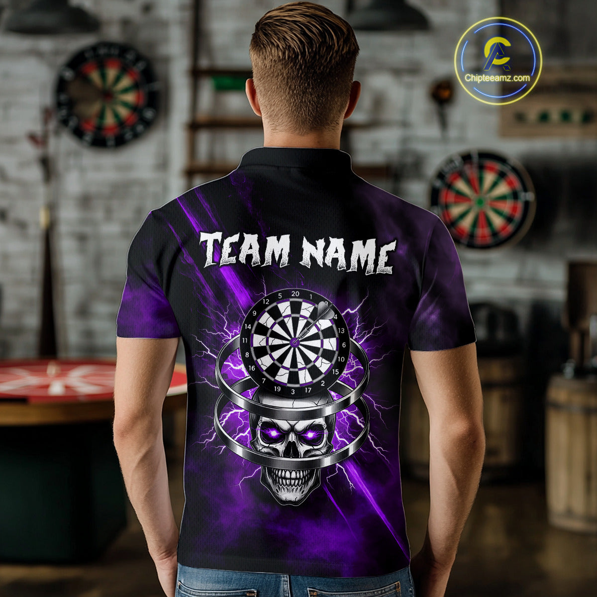 Custom Silver Skull Dartboard Lightning Purple Dart Women Polo Jerseys Outfits Dart Shirt NYN1711