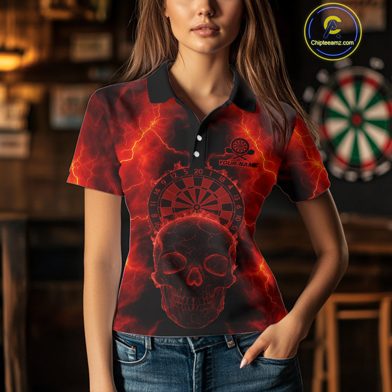 Custom Red Skull Lightning Dartboard Dart Polo Jerseys For Women Outfits Dart Shirts NYN1727