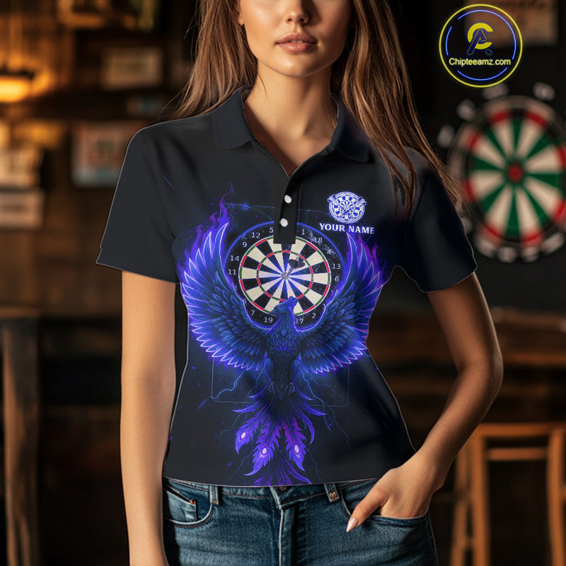 Custom Funny Flame Phoenix Blue Dartboard Dart Women Polo Jerseys Outfits Dart Shirts NYN1745