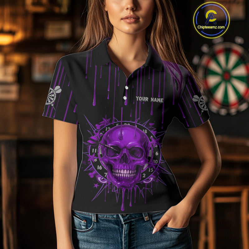 Custom Purple Dripping Horror Skull Dartboard Dart Women Polo Jerseys Dart Team Shirts NYN1757