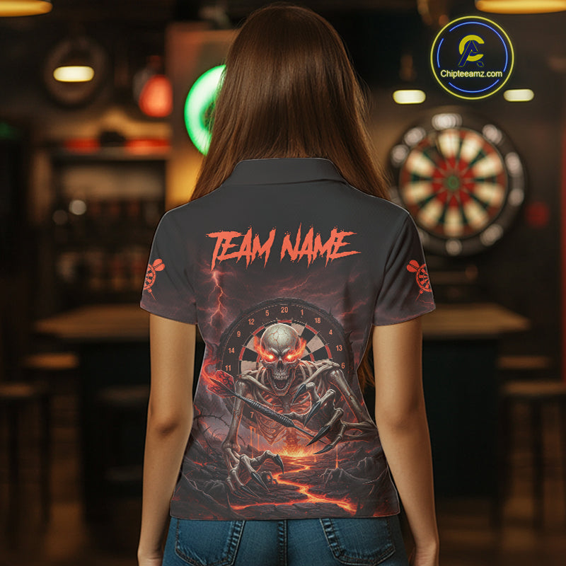Lightning Orange Skeleton Dartboard Custom Women Polo Dart Shirt Gifts For Dart Players NYN1764