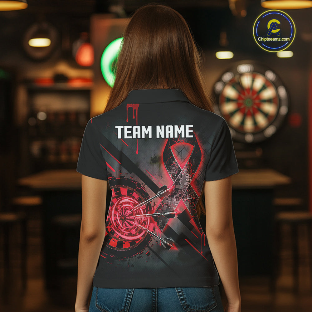Lightning Red Ribbon Dartboard Custom Breast Cancer Awareness Darts Polo Shirt For Women NYN1805