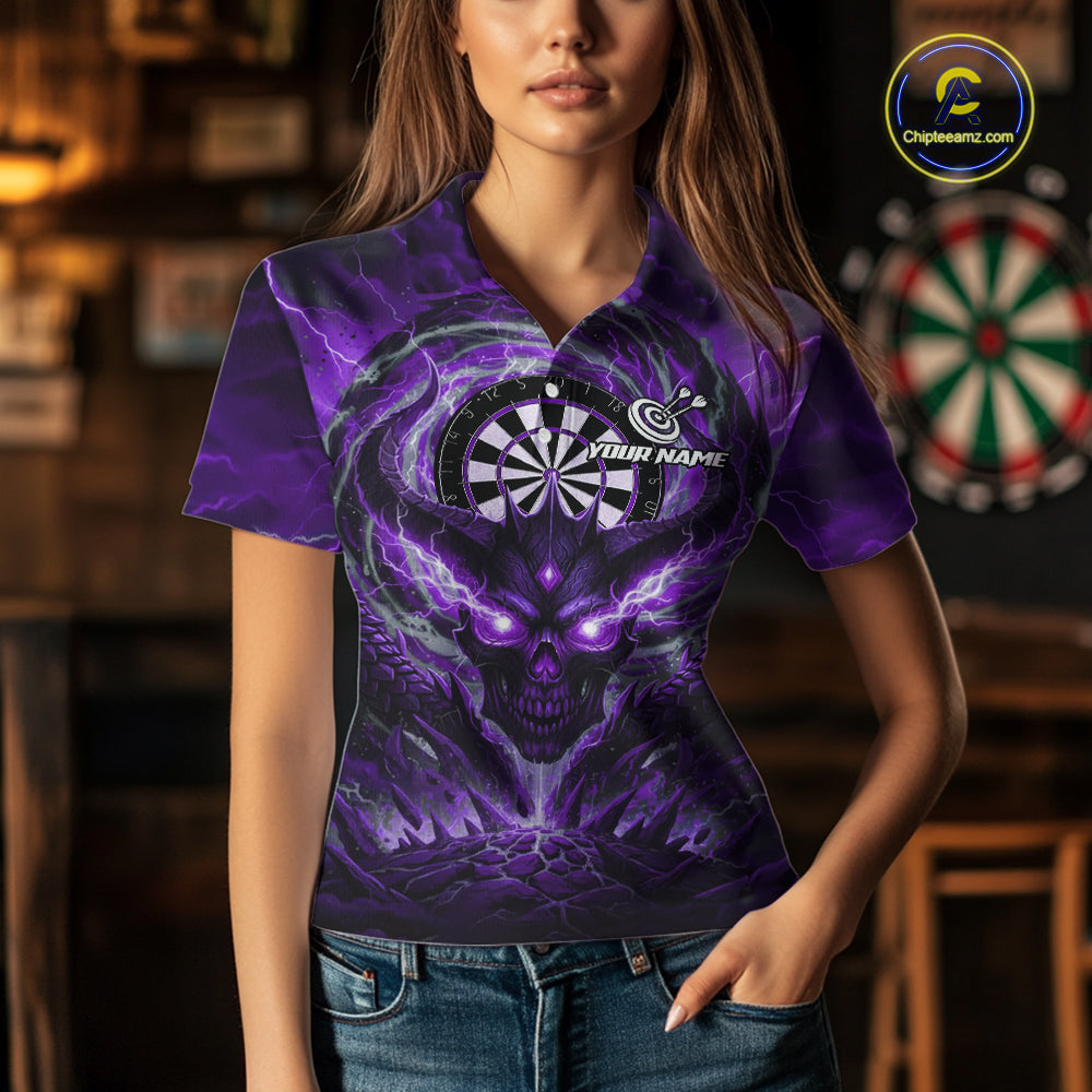 Lightning Purple & Grey Dragon Skull Dartboard Custom Women Darts Polo Shirt, Dart Jerseys NYN1809