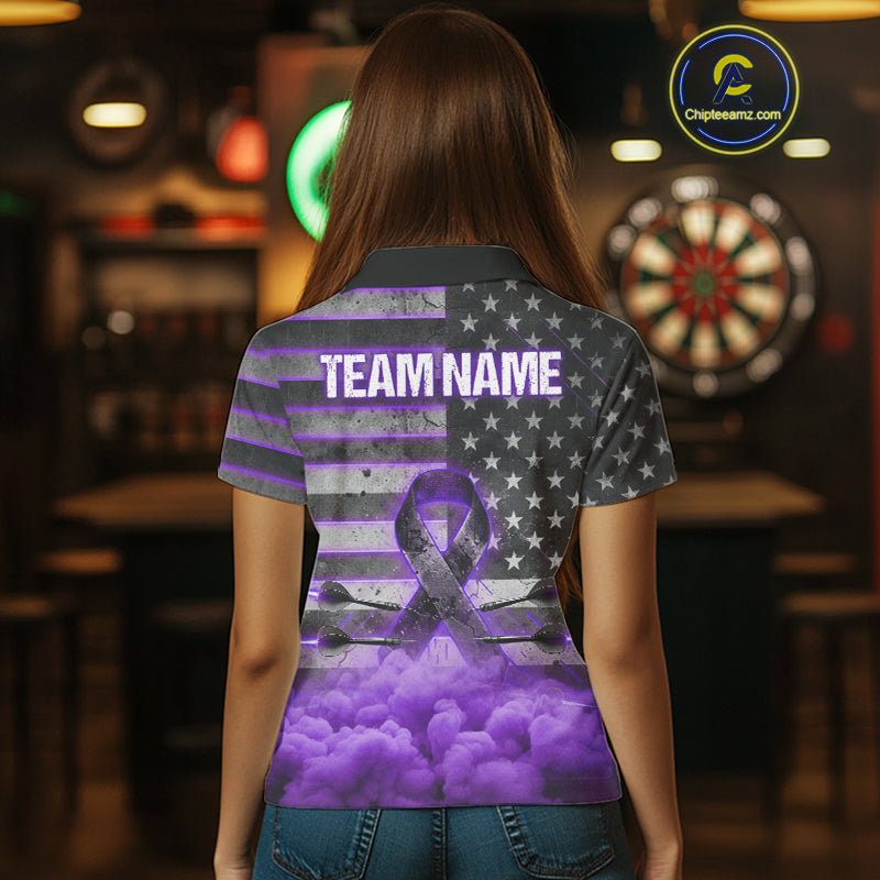 Purple Cloud Ribbon US Flag Dart Arrow Custom Breast Cancer Awareness Darts Women Polo Shirt NYN1816