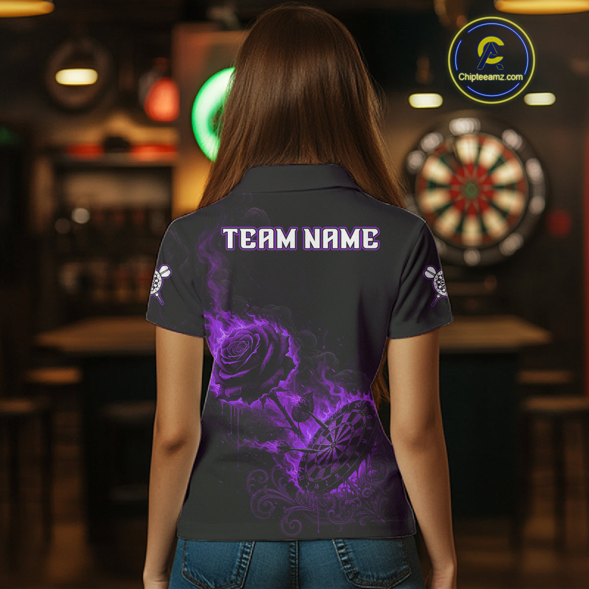 Custom Black And Purple Flames Roses Dartboard Women Darts Polo Shirt, Dart Team Jerseys NYN1847