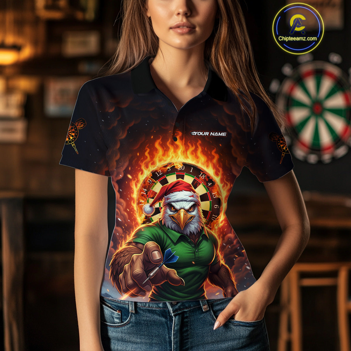 Funny Eagle Flame Dartboard Christmas Darts Polo Shirt For Women Custom Xmas Dart Jerseys NYN1853