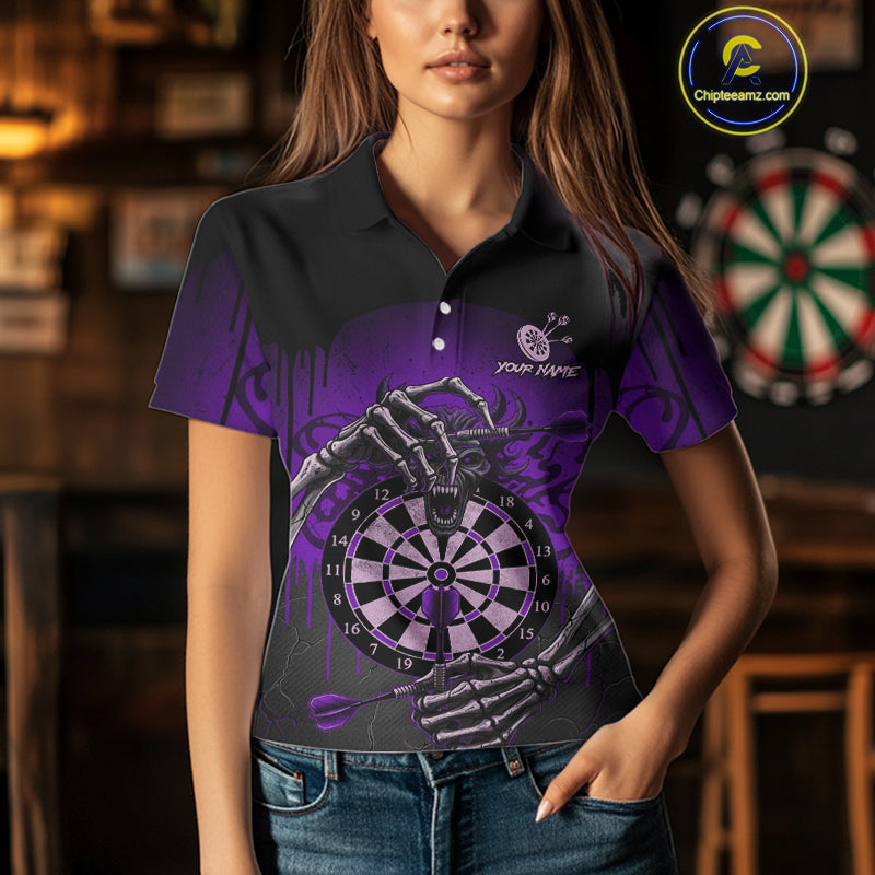 Custom Devil Skeleton Purple Dripping Dartboard Women Darts Polo Shirt Outfits Dart Jerseys NYN1857
