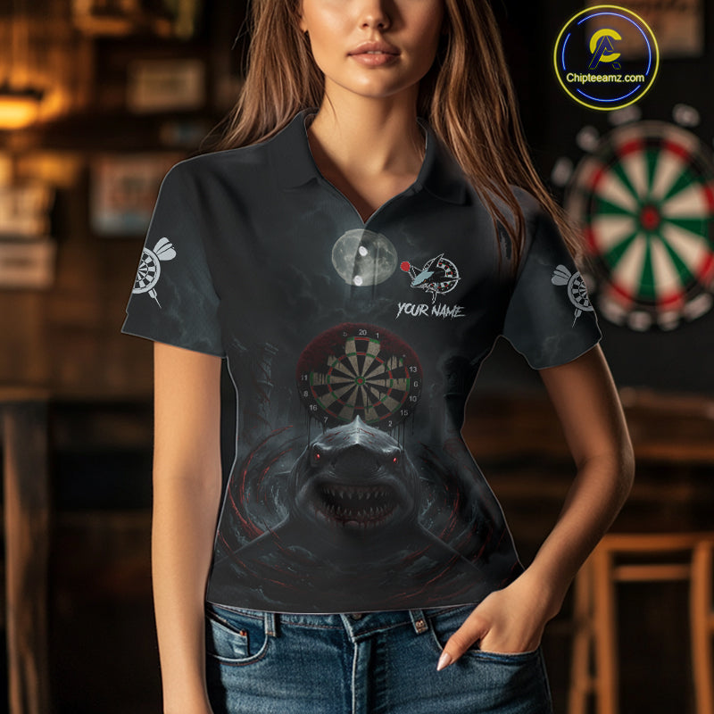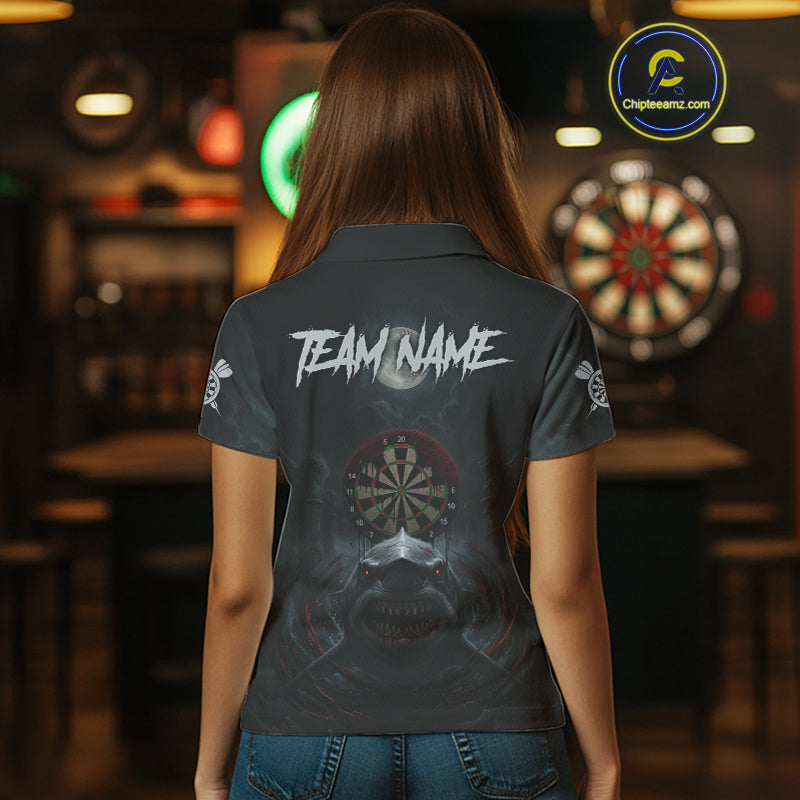 Black And Red Gothic Shark Dartboard Custom Women Darts Polo Shirt Shark Dart Jerseys NYN1921