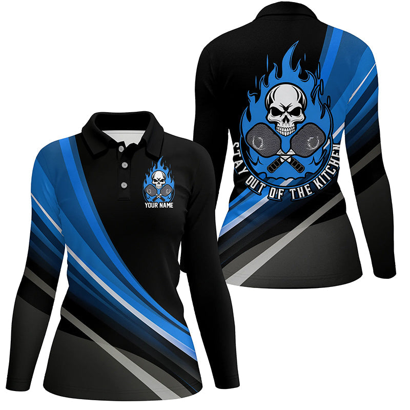 Custom Skull Women's Pickleball Polo Shirts "Stay Out Of The Kitchen" Pickleball | Blue IPHW6907