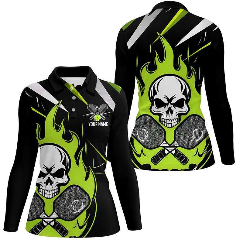 Custom Green Flame Pickleball Shirts for women, Skull Pickleball Jerseys For Team IPHW6921