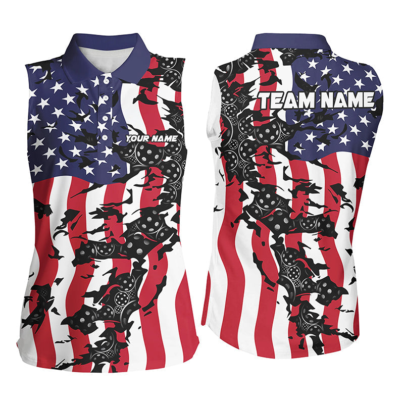 American Flag Custom Pickleball Team Shirts For Women, Patriotic Pickleball Jerseys IPHW6980