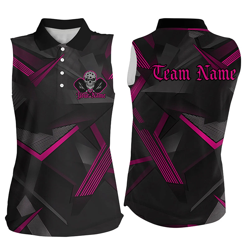 Black And Pink Custom Skull Pickleball Shirts For Women, Halloween Pickleball Outifts Gifts IPHW7449