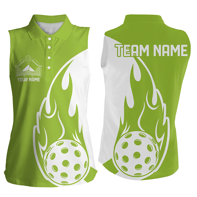 Custom Green Flame Pickleball Shirts For Women, Pickleball Team Uniform Women'S Outfit IPHW7453