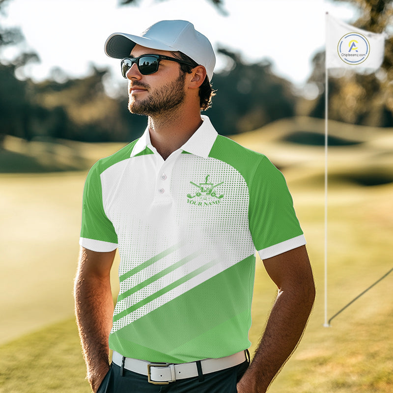 Green And White Mens Golf Polo Shirts Custom Golf Tops For Men, Personalized Golf Gifts NHN0059