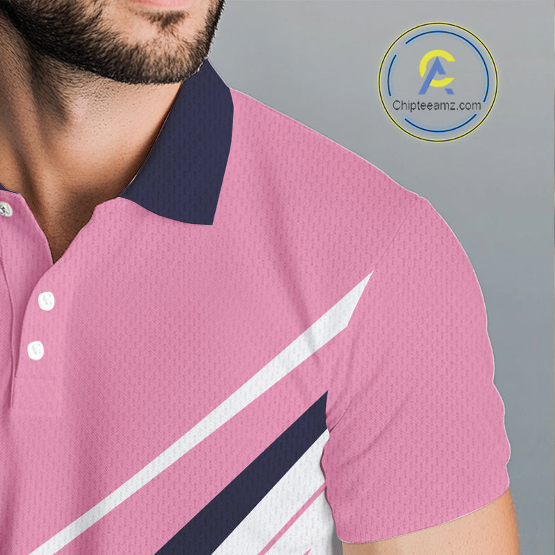 Mens Golf Polo Shirt Custom Blue And Pink Golf Shirt, White Team Golf Shirts Personalized NHN0075