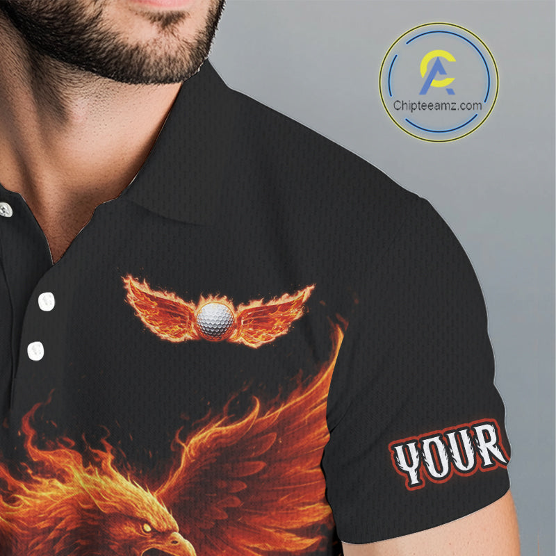 Mens Golf Polo Shirt Custom Phoenix Red Flame Team Golf Tops, White Golf Outfit For Men NHN0078