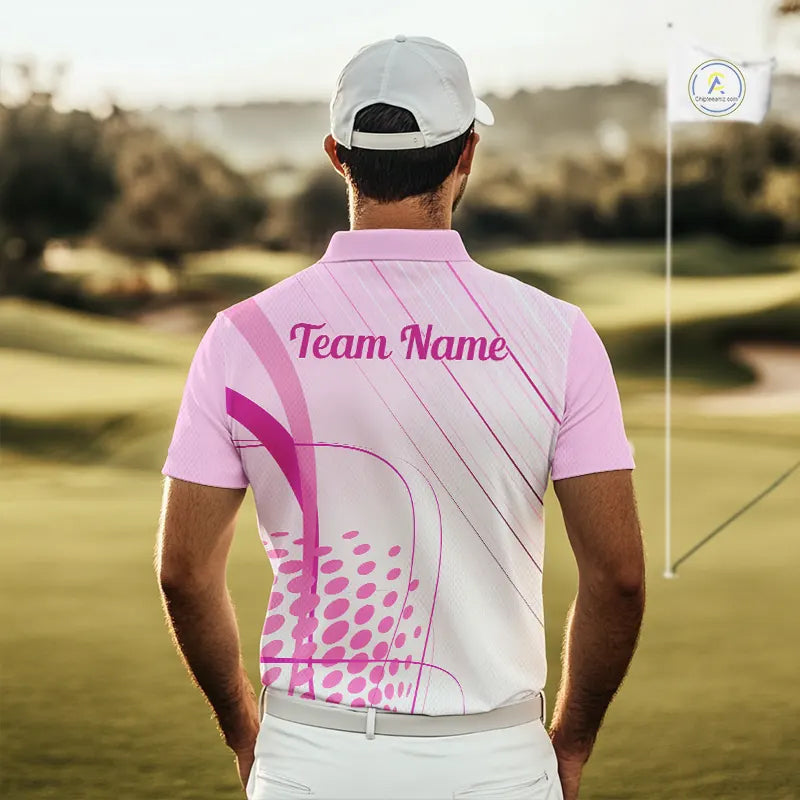 Pink White Mens Golf Polo Shirts Custom Name Golf Shirts For Men Personalized Golf Gifts NHN0015