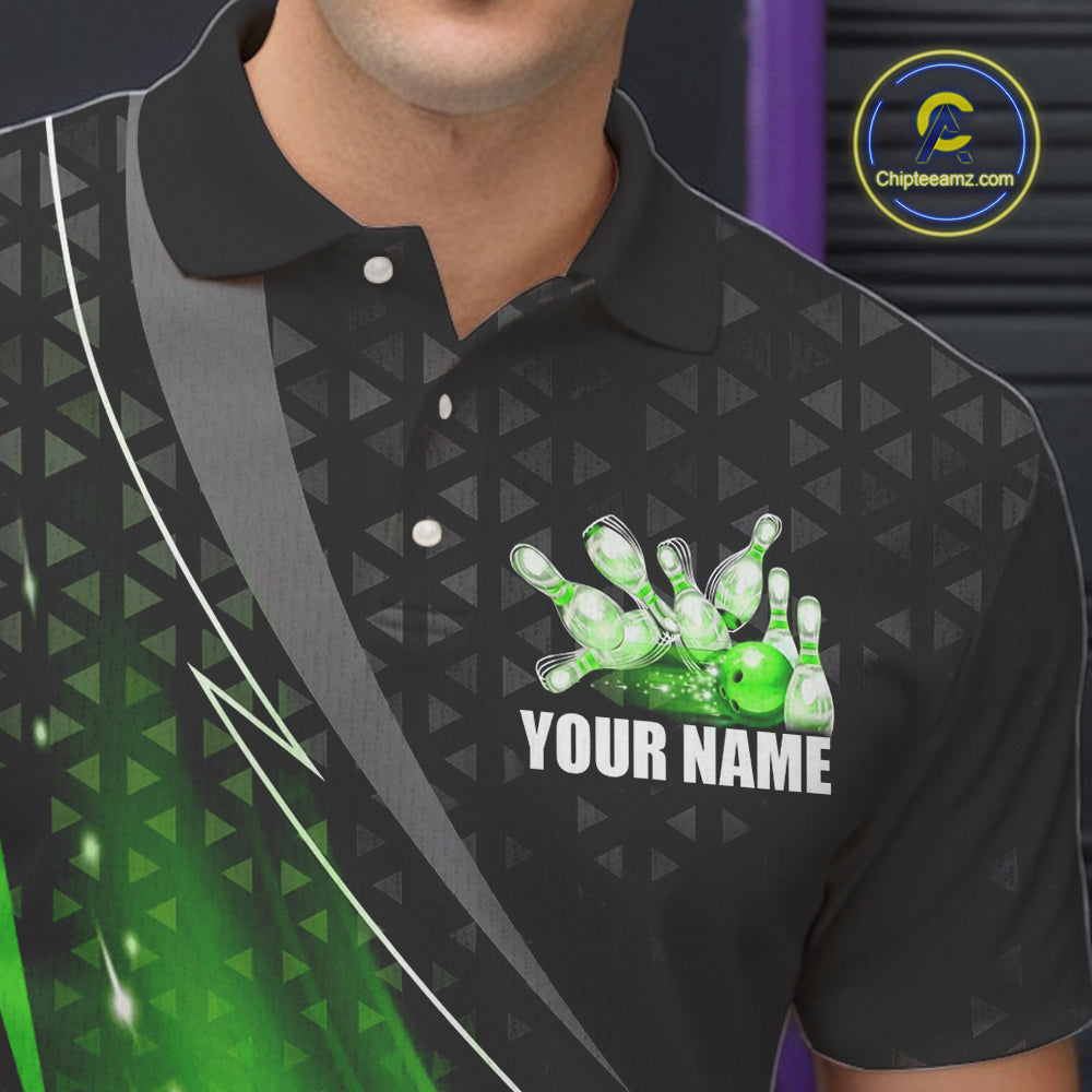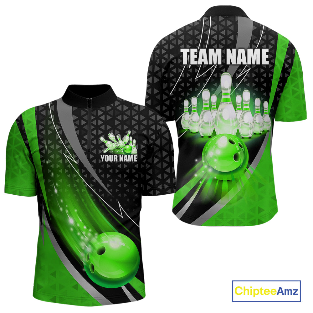 Black and Green Bowling Camo Polo, 1/4 Zip Shirt for Men Custom Team Bowling jerseys, Bowler Outfit NQS10425