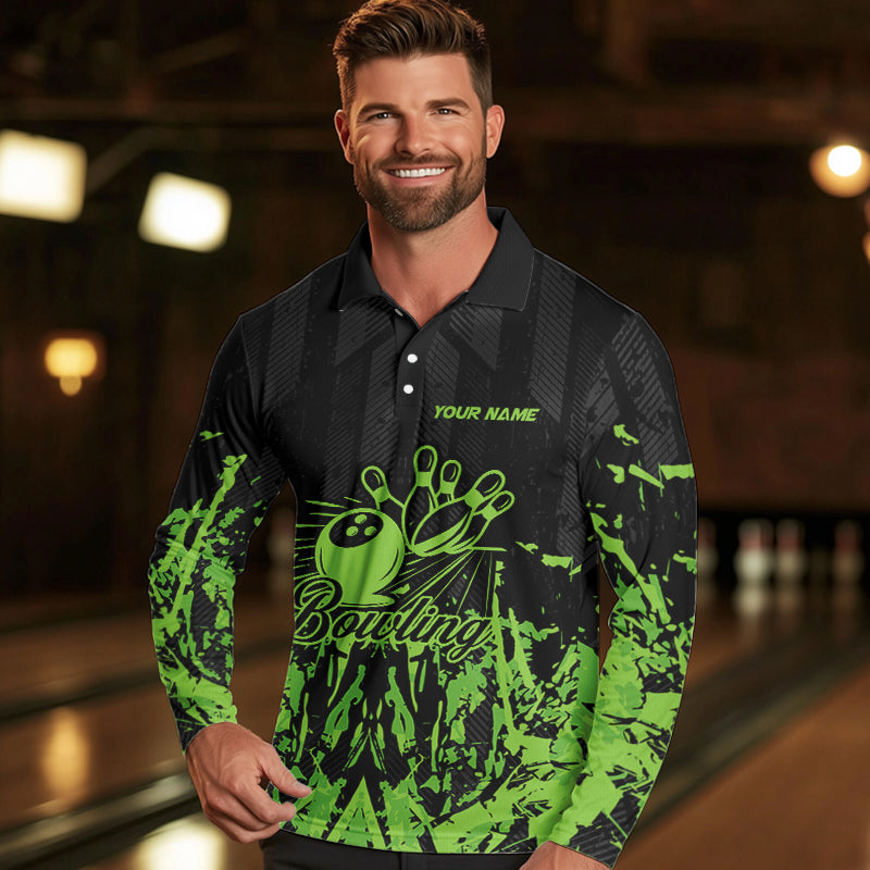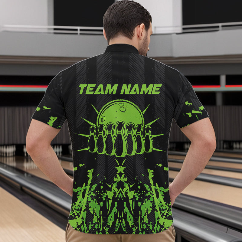 Black and Green Camo Bowling Team Shirts For Men Custom Bowling Uniform Polo, Quarter Zip Shirts NQS9665