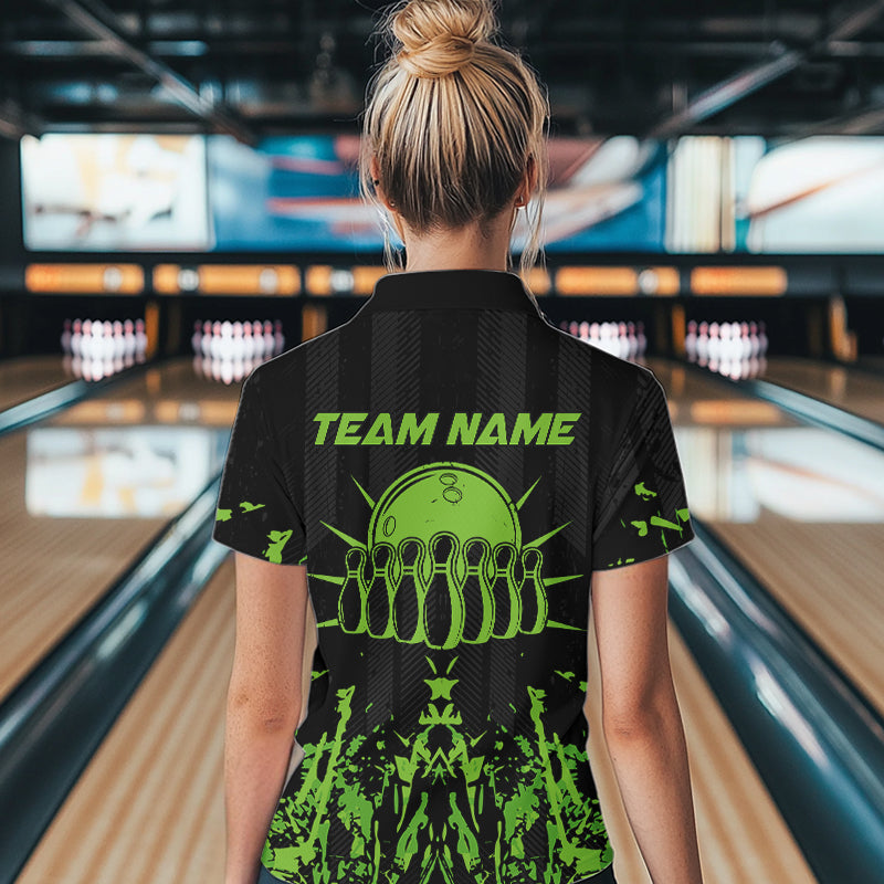 Black and Green Camo Bowling Team Shirts For Women Custom Bowling Uniform Polo, Quarter Zip Shirts NQS9665