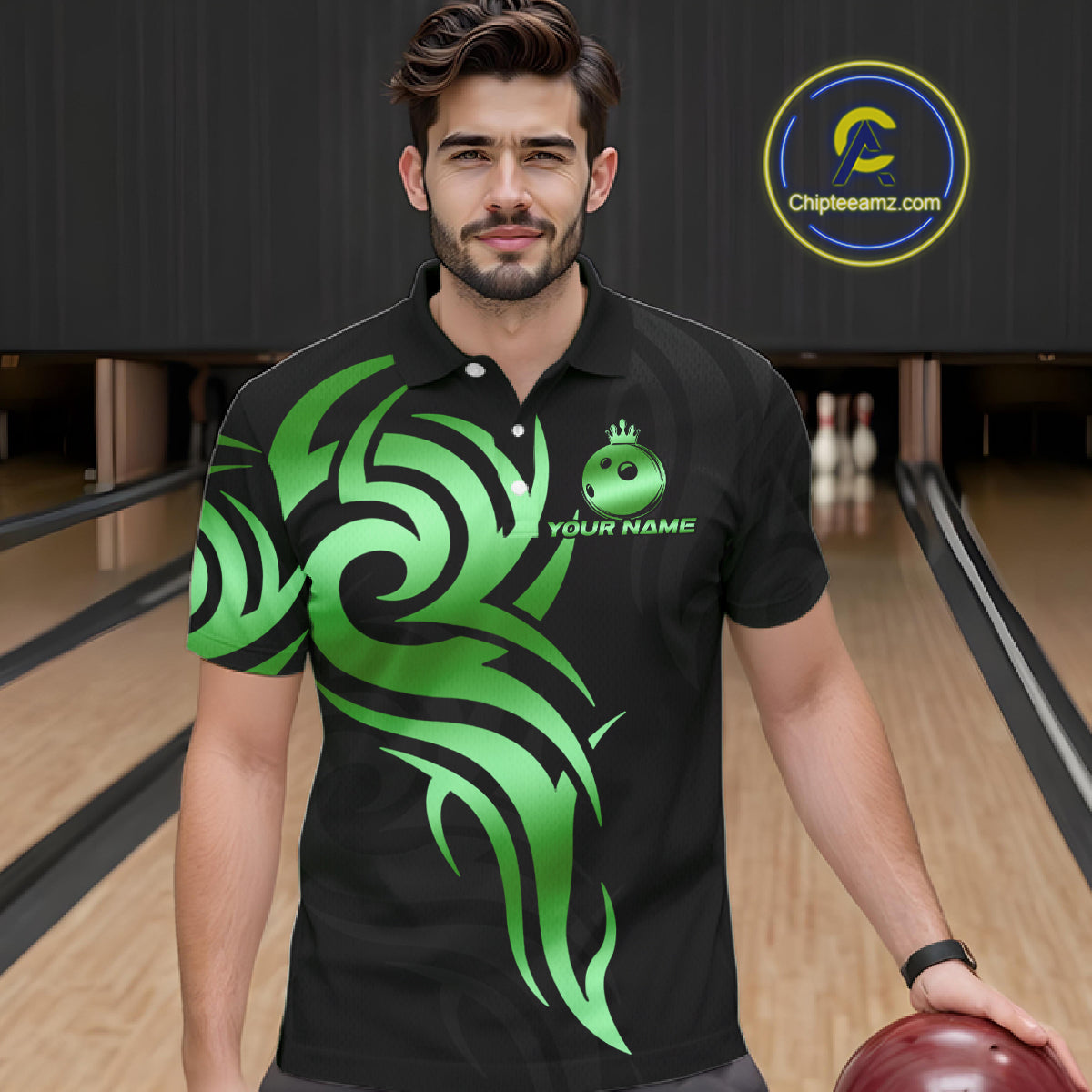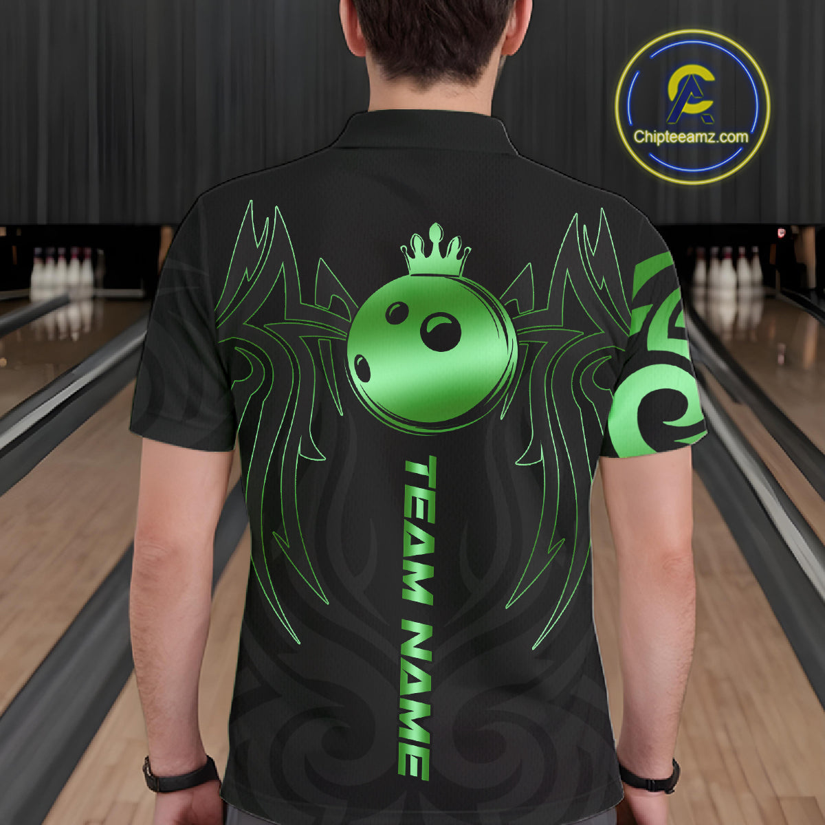 Black and Green crown Bowling ball Polo, Quarter Zip Shirts for Men Custom Bowling Team jerseys NQS10731
