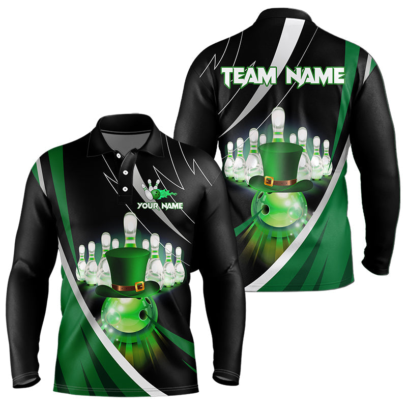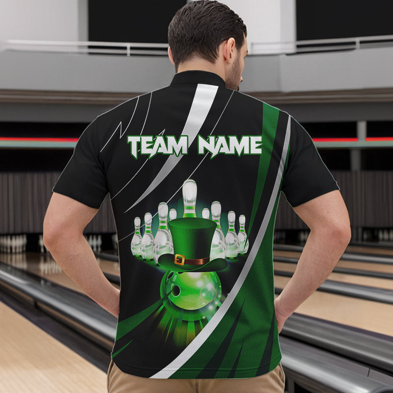 Black and Green St Patrick Day bowling Polo, Quarter Zip shirts for men Custom Team bowling jerseys NQS9403