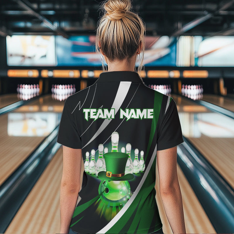Black and Green St Patrick Day bowling Polo, Quarter Zip shirts for Women Custom Team bowling jerseys NQS9403