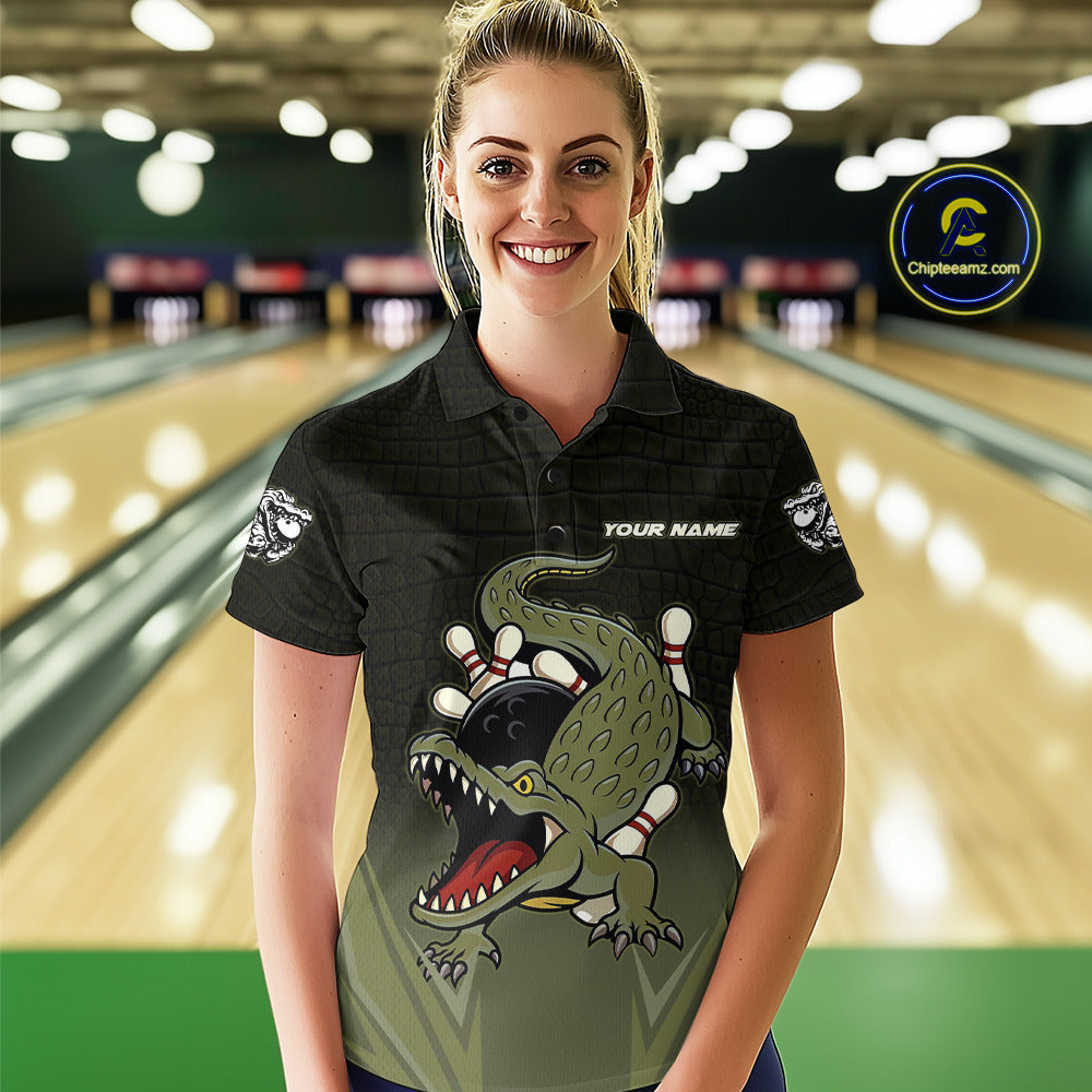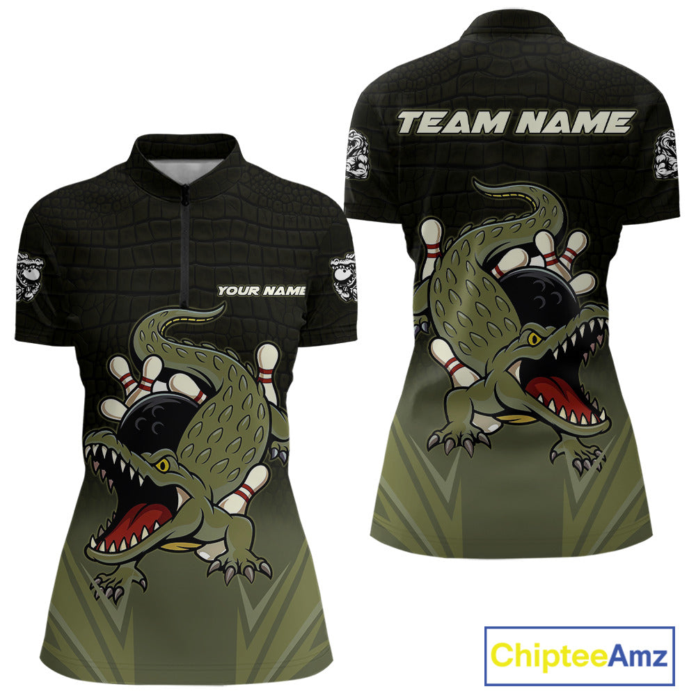 Custom Black and Green Alligator Bowling shirts for Women, Bowling Team league jersey NQS10735