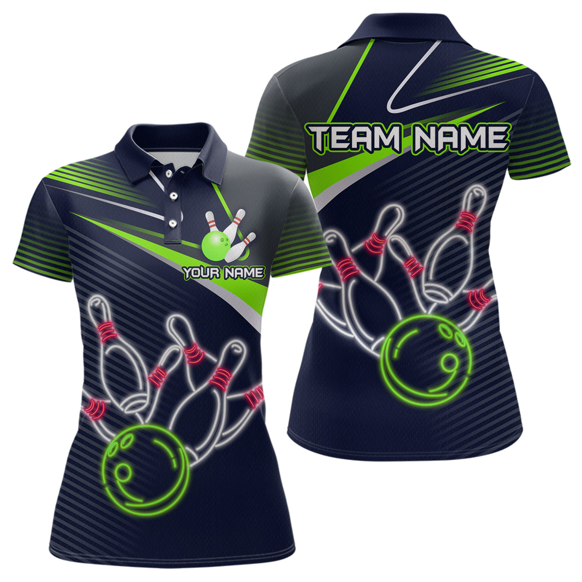 Custom Green&Blue Bowling Shirts for Men Women Team Bowling Polo & 1/4 Zip Shirt MBL41