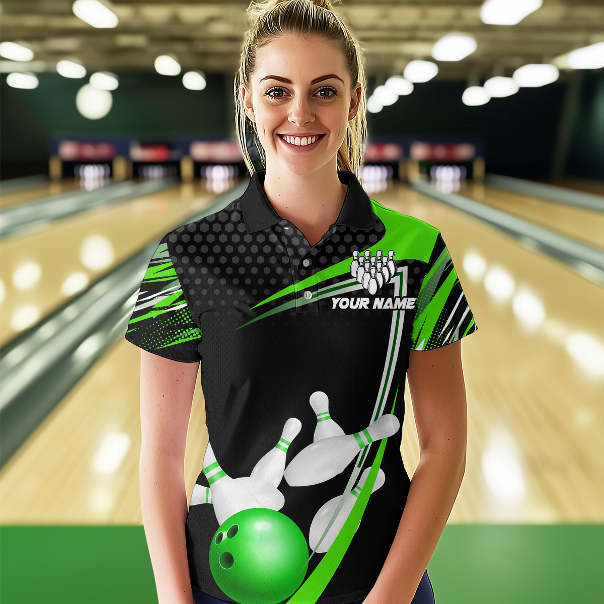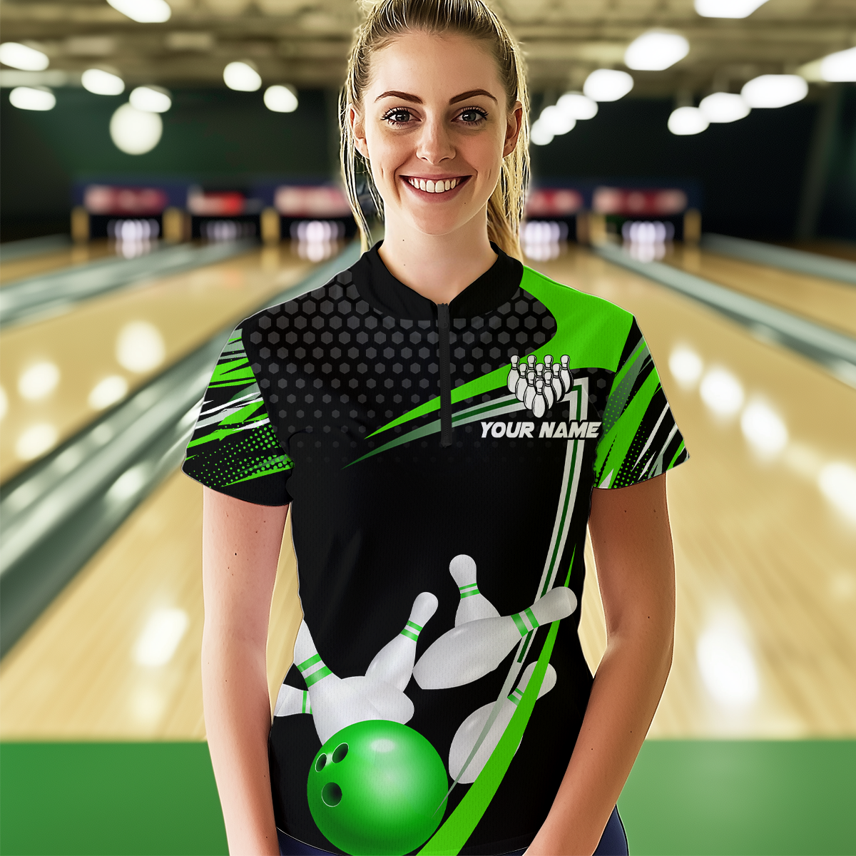 Green Bowling Shirts for Men and Women Bowling Shirt Team Bowling Polo & 1/4 Zip Shirt MBL36