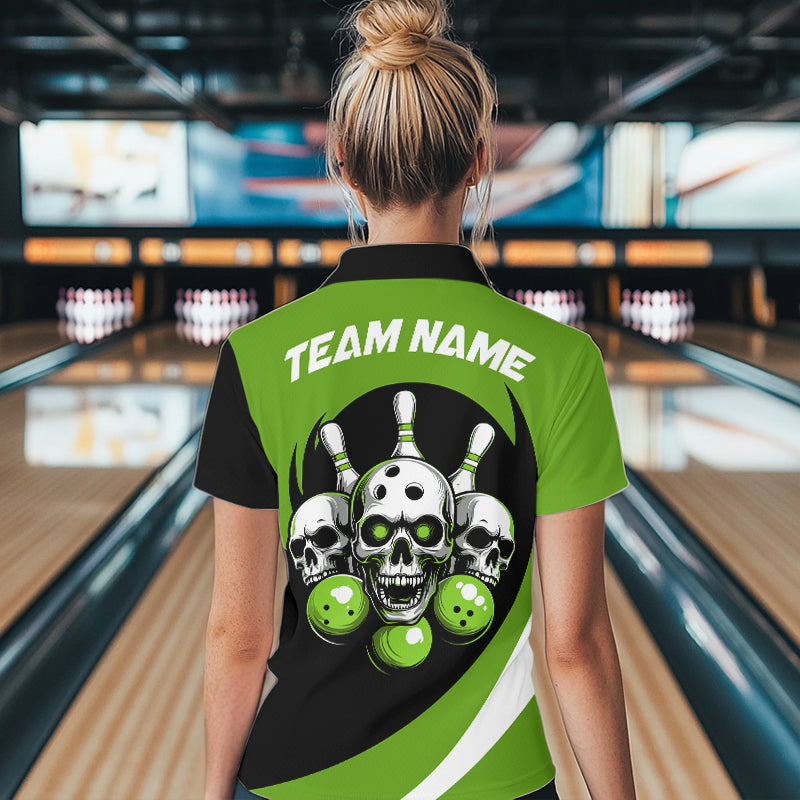 Custom Green Skull Bowling Shirt Quarter-Zip Bowling Jersey for Men Women Bowling Outfit QZT671