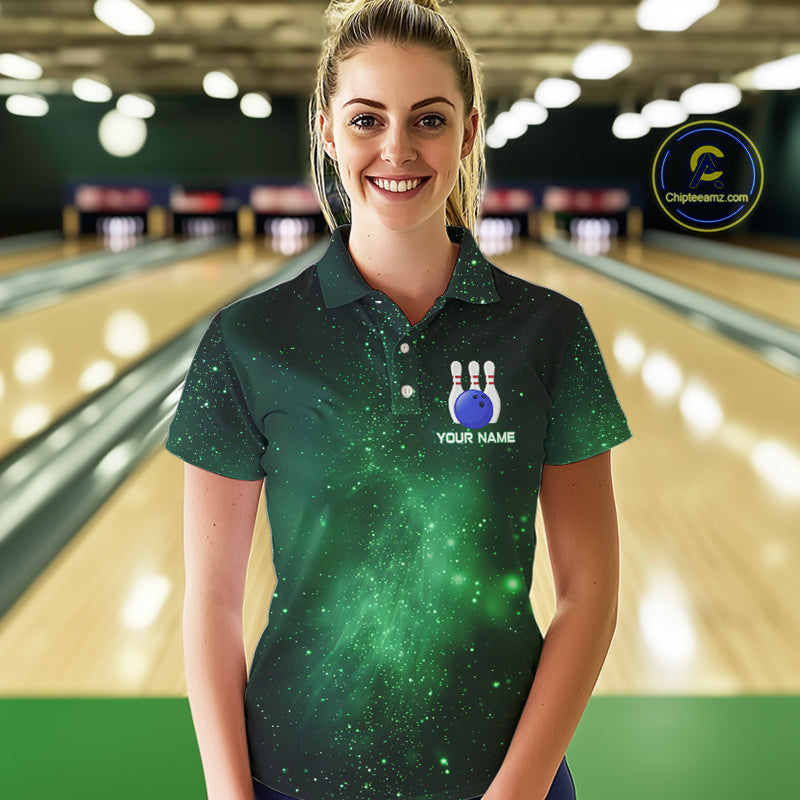 Funny Flamingo Team bowling shirts for Women custom Green Galaxy pattern bowling jerseys for bowlers NQS10884
