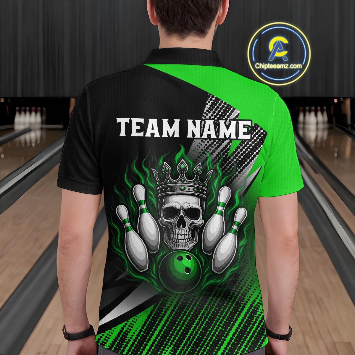Green Skull Crown Bowling Custom Men Bowling Shirt Polo & Quarter-Zip Bowling Team Jerseys HNT65