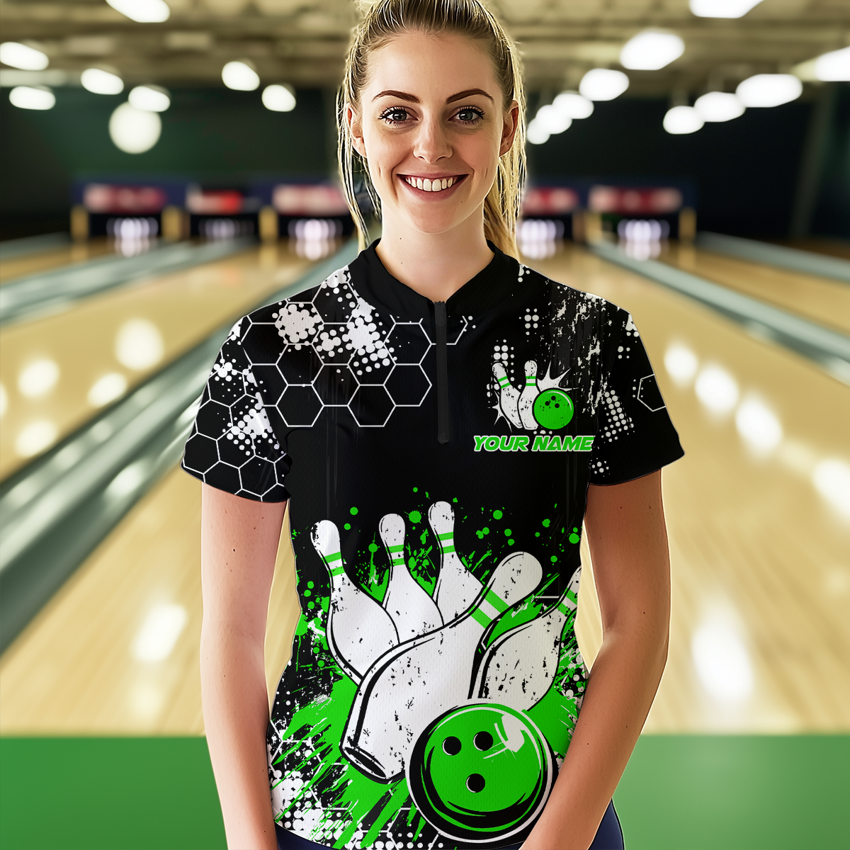 Green Watercolor Bowling Shirts Men Women Team Custom Bowling Polo & 1/4 Zip Shirt MBL60