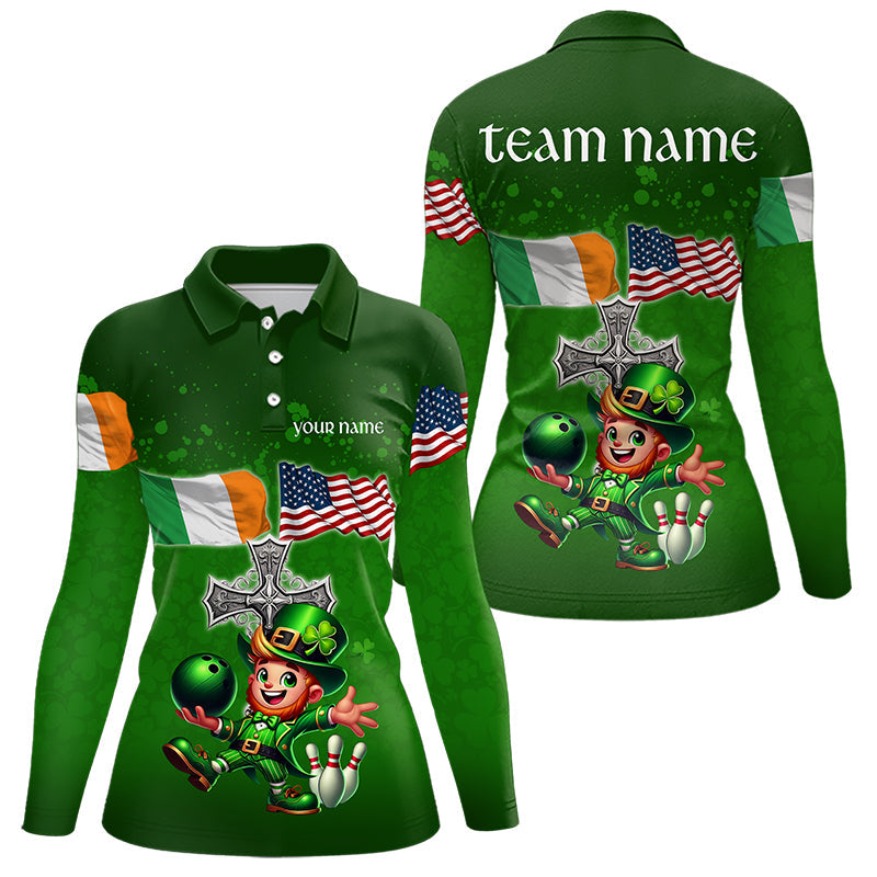 Irish American Flags Green Shamrock Bowling Shirts For Women Custom St Patrick Day Team Bowling Jersey NQS9388