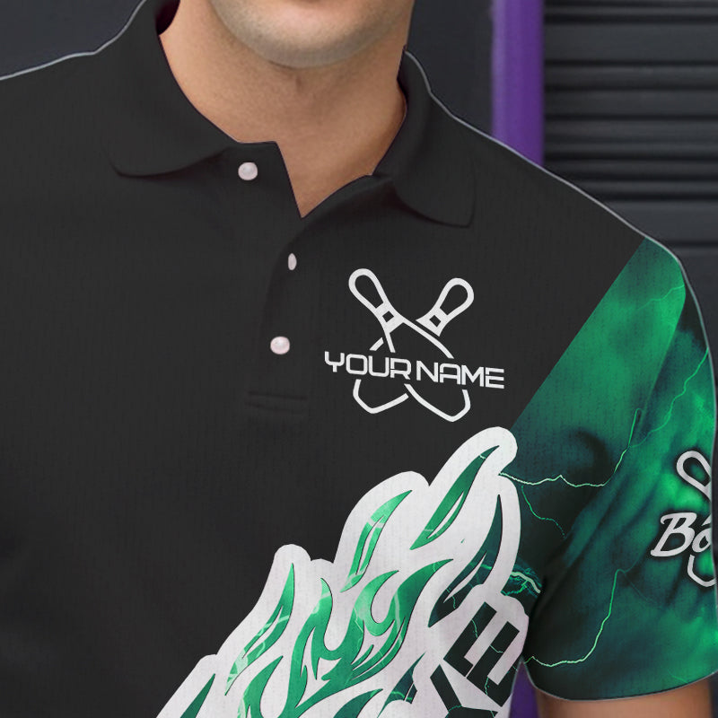 Custom Black And Green Thunder Lightning Strike Bowling Polo Shirts For Men Team Shirt IPHW8534