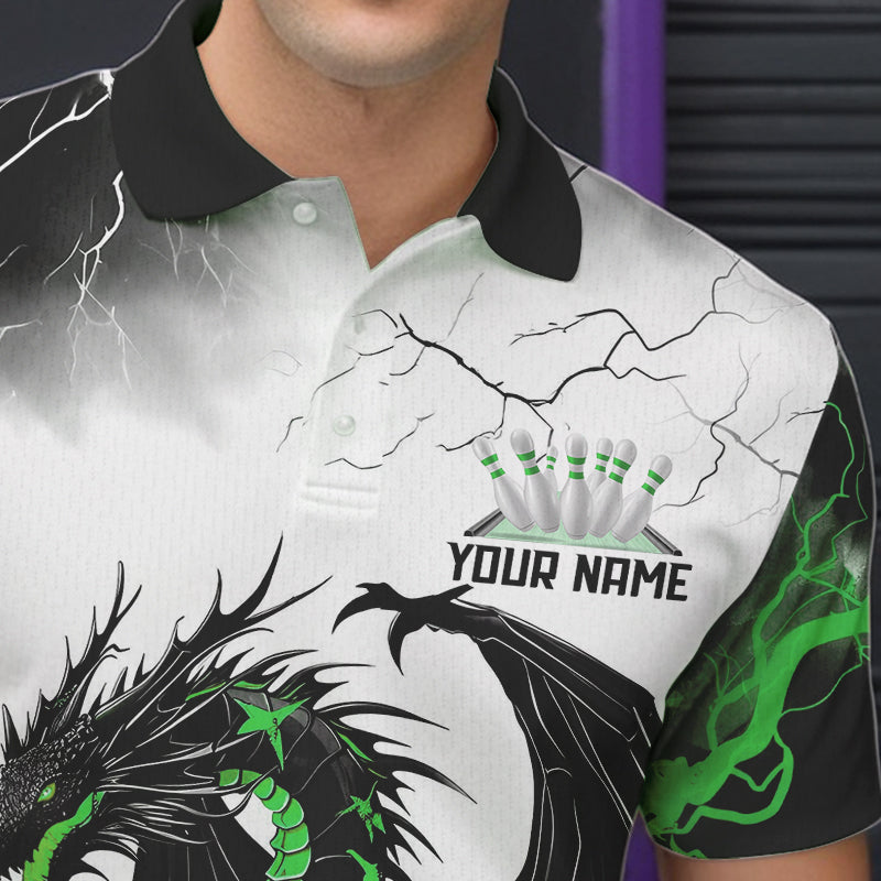 Black And Green Thunder Lightning Custom Dragon Bowling Men Polo Shirts, Bowling Uniform IPHW8696