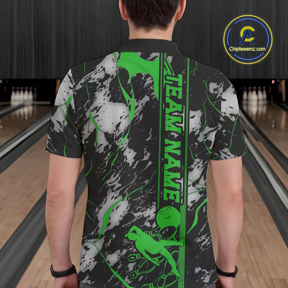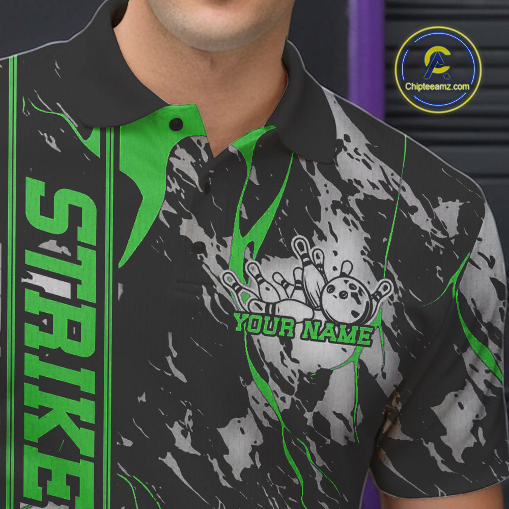 Custom Green And Gray Camo Strike Bowling Polo Team Shirts For Men, Strike Bowling Jersey IPHW9243