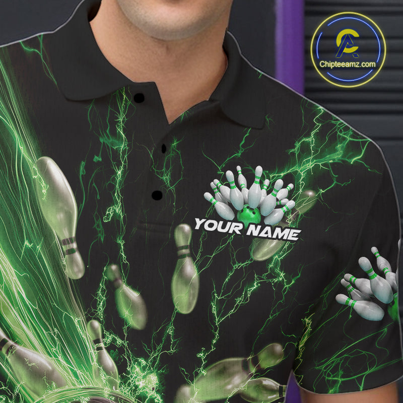 Custom Green Thunder Lightning Bowling Team Men Polo Shirts, Bowling Jerseys IPHW9746