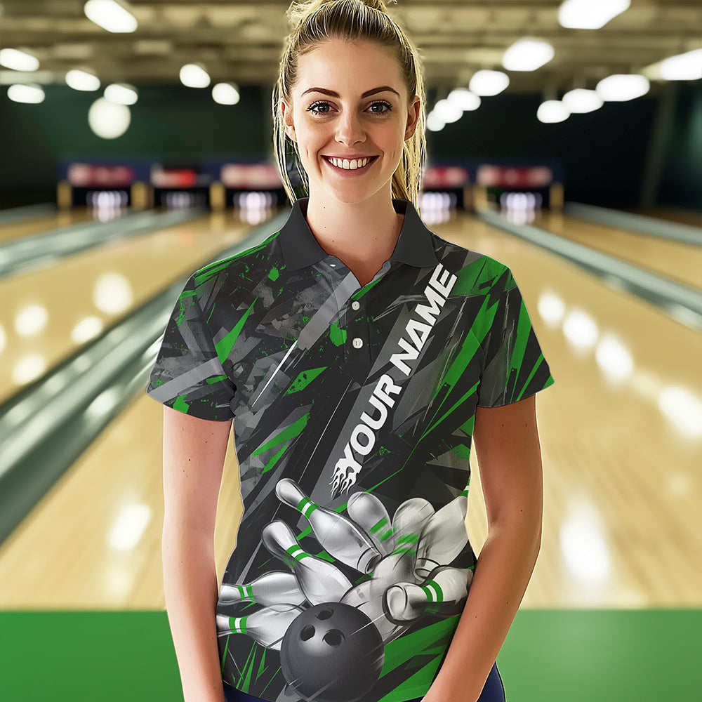 Custom Black And Green Bowling Polo Shirts For Women, Bowling Tournament Team Uniform IPHW8529