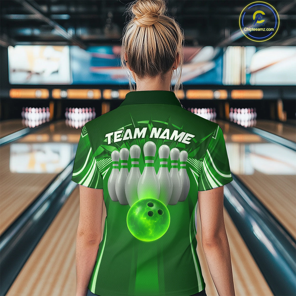 Custom Green Bowling Tournament Bowling Polo Shirts For Women With Team Name IPHW9281