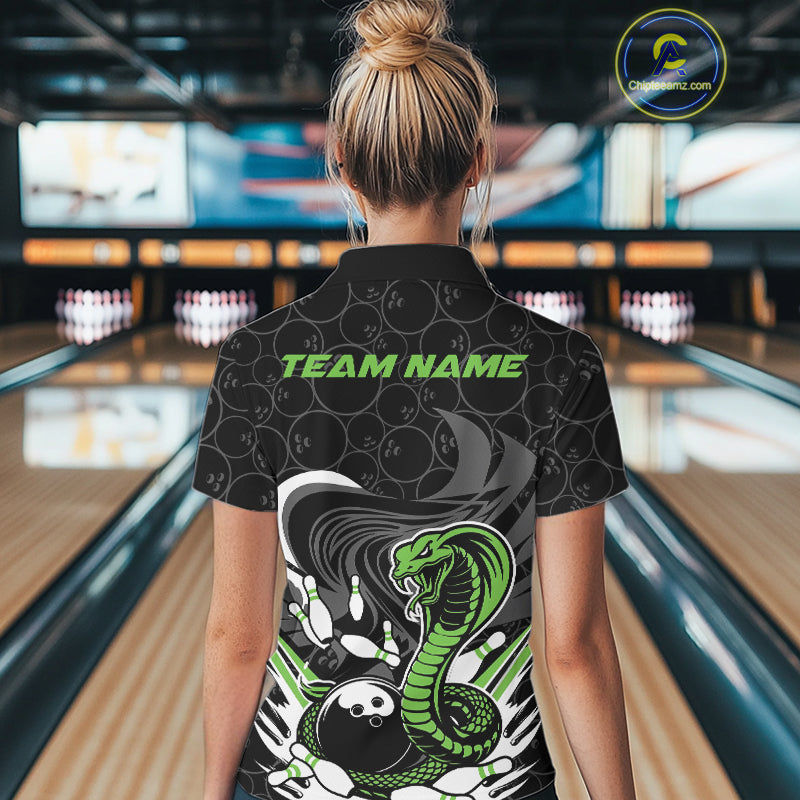 Custom Black And Green Cobra Snake Bowling Women Polo Shirts, Cobra Bowling Team Shirt IPHW9701