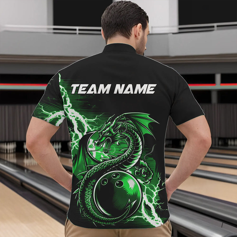 Custom Black And Green Thunder Lightning Dragon Bowling  Quarter-Zip Shirts For Men, Bowlers Outfits IPHW8665